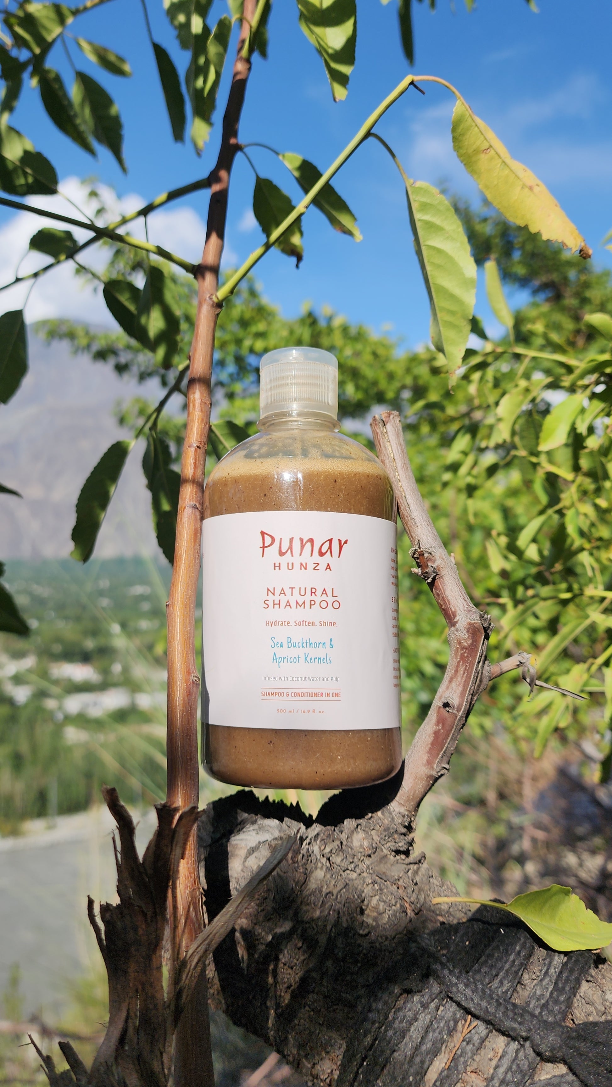This Shampoo is handmade in Gilgit-Baltistan using Sea Buckthorn, Apricot Kernel, real Coconut Water, Pulp, Rice water, Flax seeds and many more nourishing ingredients. It nourishes deeply, strengthens roots, and leaves your hair soft, smooth, and shiny. It works like a shampoo + conditioner in one.
